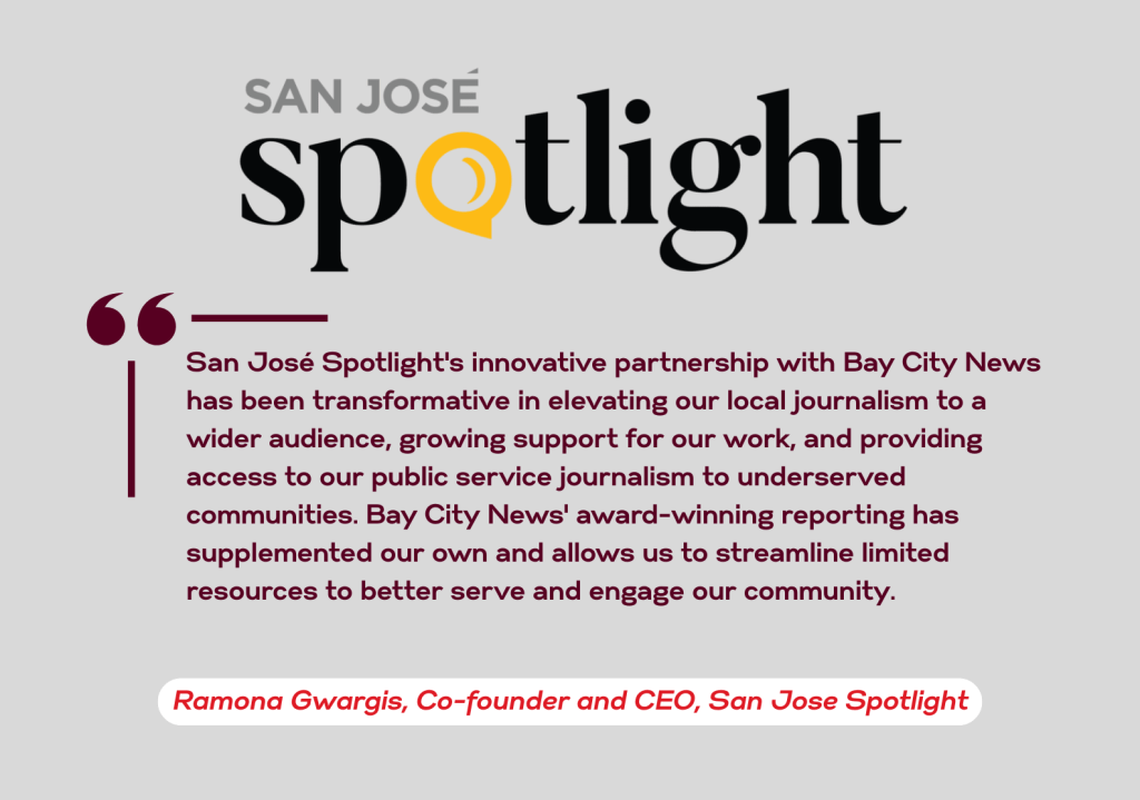 Nearly every newsroom in the Bay Area has used BCN content either directly on their platforms or indirectly via the ecosystem’s network effect during the last five decades. And recently, we have expanded with text, photo, video and more event listings to serve additional independent, digital outlets in 13 counties, from Mendocino to Marin to Monterey. Our local content, which is all verified by reporters and editors working around the clock, reaches the public through conventional outlets that are already subscribers (TV, radio, print, digital) and via through our affiliated nonprofit website at LocalNewsMatters.org.