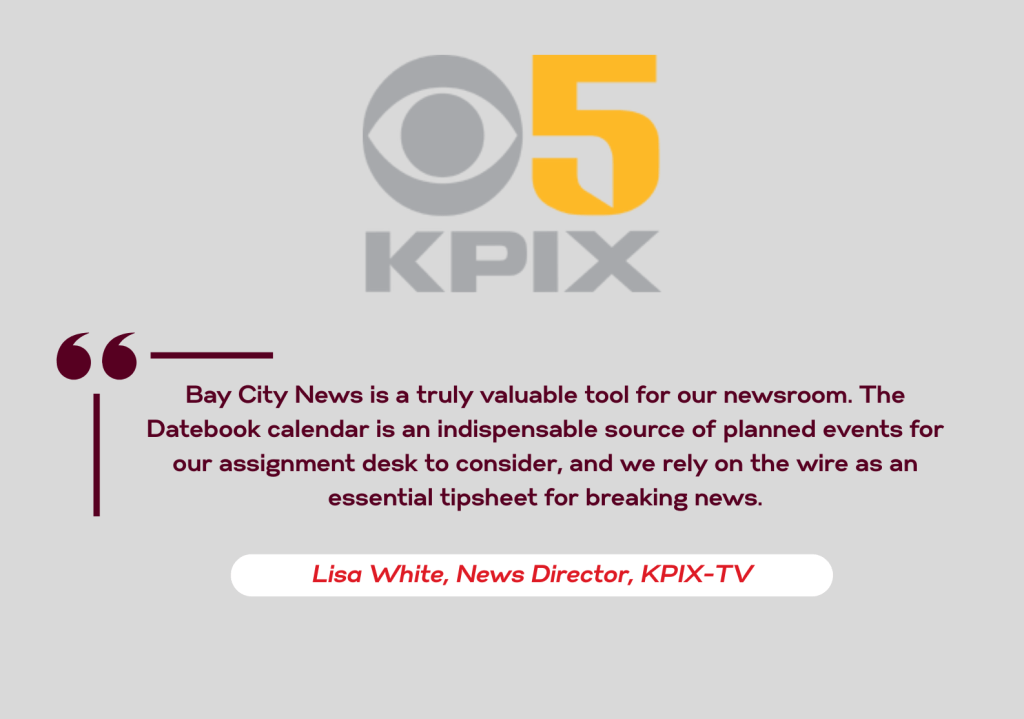 Bay City News Service is the trusted news source for the region’s top media outlets, government agencies, public affairs teams and other community stakeholders. With around-the-clock news coverage, we deliver timely, accurate and verified stories on breaking news, government, legal, environmental and civic topics that impact nearly 10 million people.